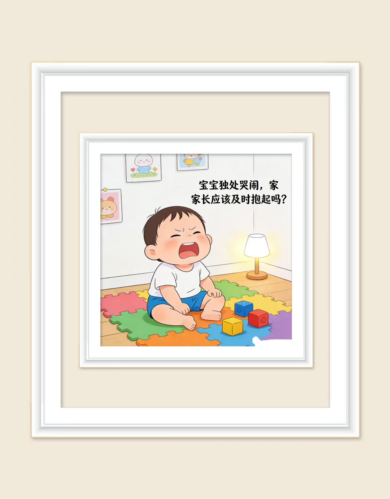 宝宝独处时哭闹,不建议立刻无条件抱起,但也不能放任不管,需要结合宝宝年龄、哭闹原因和状态综合判断,具体可以从以下几个角度分析:
